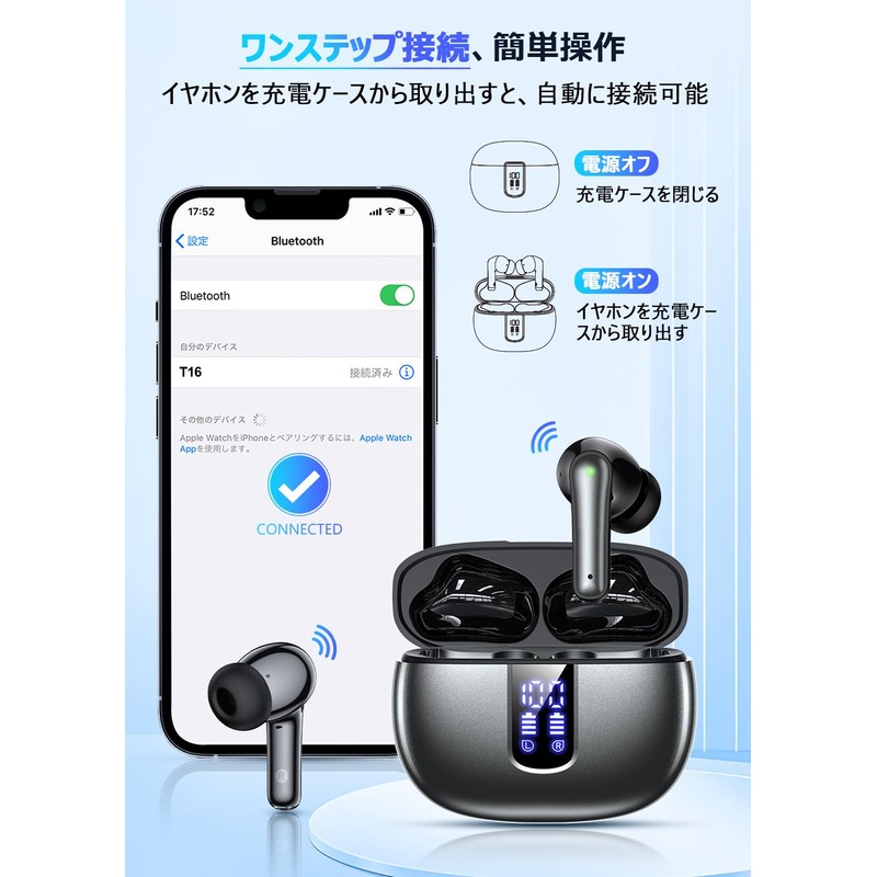 - Introducing the best-in-class wireless earbuds "T16" in the industry, with our full effort. With the concept of "finished feel and absolute sound quality of a new dimension", this model is made with high quality acoustic technology that has been developed with our best technology and innovative features and ultimate comfort. (Adopts the Latest High Performance Chip Bluetooth 5.3) These Bluetooth earphones adopt advanced Bluetooth 5.3 technology, reducing delays and skipping compared to previous models, improving stability. You can listen to music, and watch games and videos comfortably. Stable communication in crowded trains, and other places where radio waves are jumping. Lightweight design for one ear: Each ear weighs approximately 0.2 oz (4.3 g), and weighs only 1.7 oz (4.3 g), including the case, making it small and lightweight. You can use it for a long time without fatigue. It will stay in place and fit perfectly in your ears while doing sports such as daily commuting to work or school, sleeping or jogging
