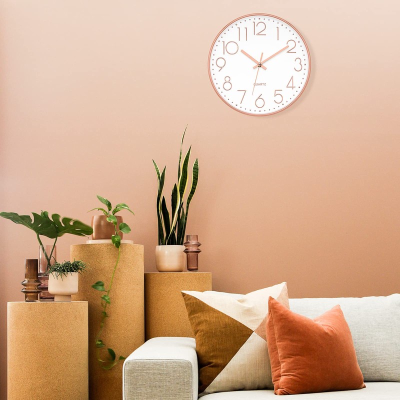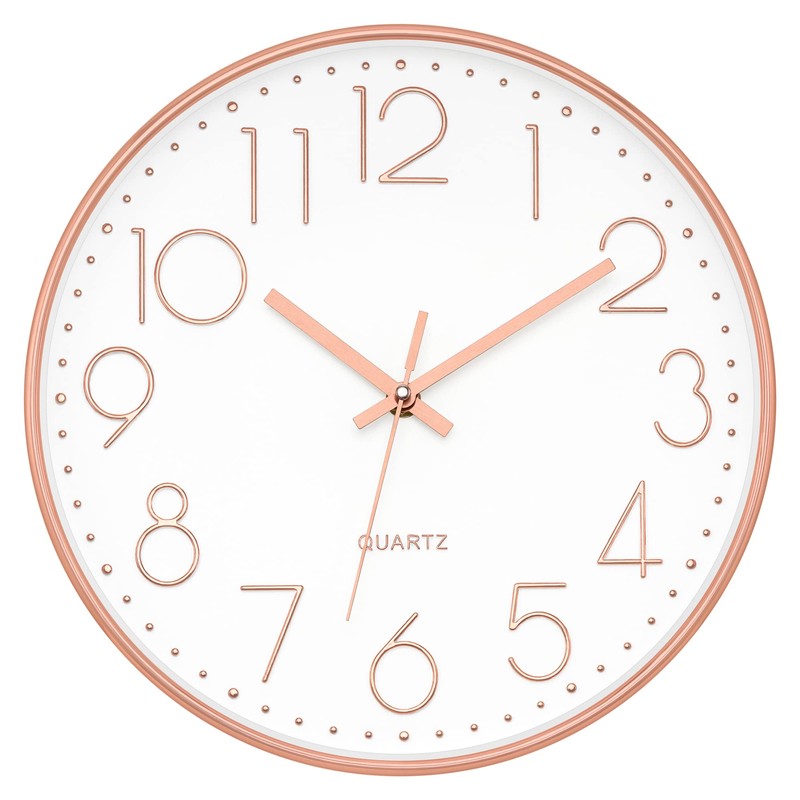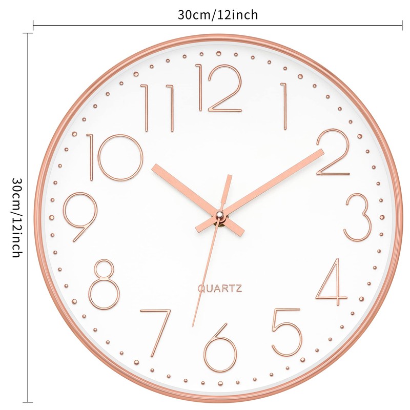 - Elegant Design: Rose gold color frame makes it the perfect decorative wall clock for office, living room, classroom, bedroom, bathroom. Unlike other using cardboard as clock background that easy damaged in moisture and wet season, this clock back base are made of solid plastic, therefore remain well function and dry in any weather condition.