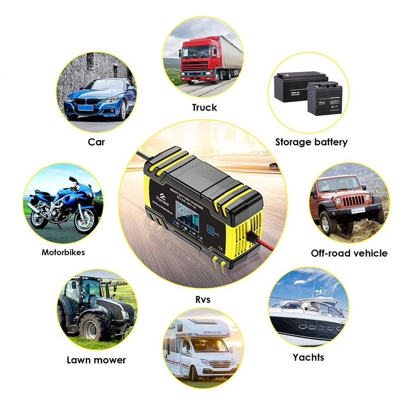 • Widely Used: Lead-acid battery charger/ maintainer, compatible with all types of vehicles-charging and maintenance. For example: Cars, MPVs, RVs, Pickup trucks, Motorcycles,Golf cart,Lawn mowers, ATVs, Lawn tractors, SUVs, Off-road vehicles, Boats, Classic cars, Agricultural vehicles, Ships, Motor boats,etc. FOXWER Power outage supplies,we deserve to have them.