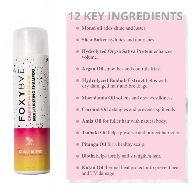 FoxyBae California Dreaming Moisturizing Shampoo | 12-in-1 Blend Hair Nourishing Shampoo for Moisture, Volume with Biotin, Argan Oil, Shea Butter | Sulfate-Free, Paraben-Free, Cruelty-Free - 10 Fl Oz