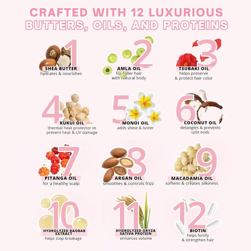 - Key Ingredients - Prepared to strengthen and fortify your hair follicles our healthy hair growth shampoo is infused with the powerful blend of Biotin, Shea Butter, Argan Oil, Coconut Oil, Amla Oil and more natural extracts to promote your hair thickness and reduce breakage, frizziness, split ends, inside and out!