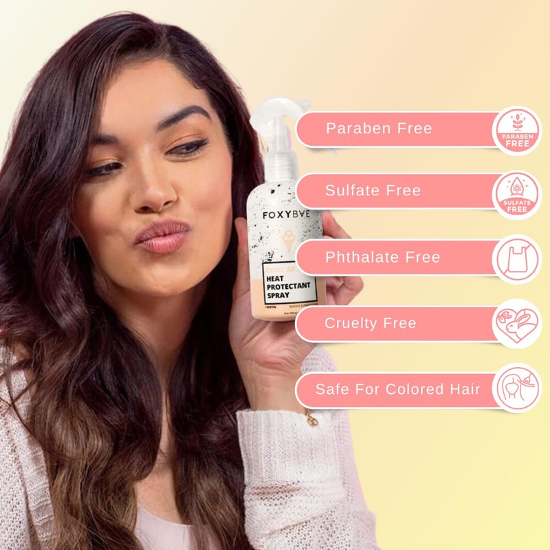 - Keratin Hair Treatment: FoxyBae Cool AF Hair Heat Protectant Spray has keratin that provides silky smooth hair that's full of natural movement. This hair heat protectant will give you the perfect base for a gorgeously smooth, glossy look.