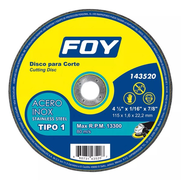 FOY Disco Para Corte De Acero Inoxidable 4.1/2 X1/16 Foy 143520