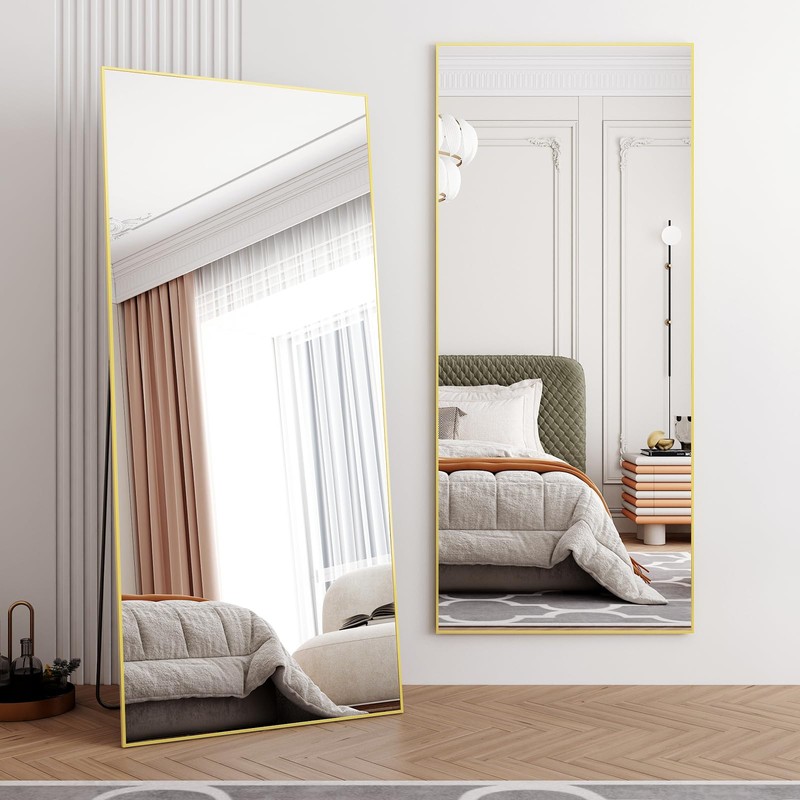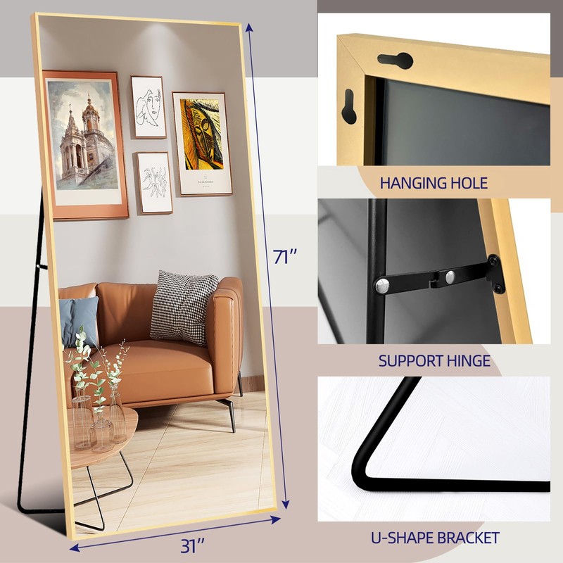 - Unique Design:This standing mirror is made of stylish wrap-around craftsmanship, classic rectangular design with high-quality aluminum frame, which makes it more unique and high-grade. The overall unique design will bring a different beauty to your room.