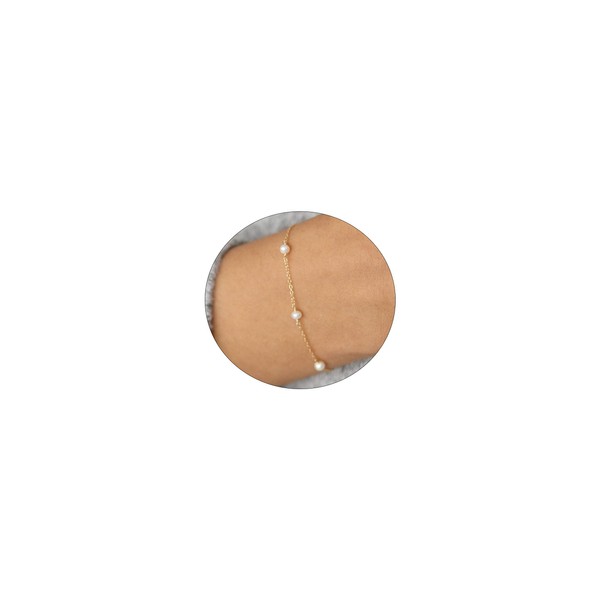 - Material: Dainty bracelet is made of stainless steel and 18K gold plating. This pearl chain bracelet is nickel-free, lead-free, cadmium-free and hypoallergenic for women