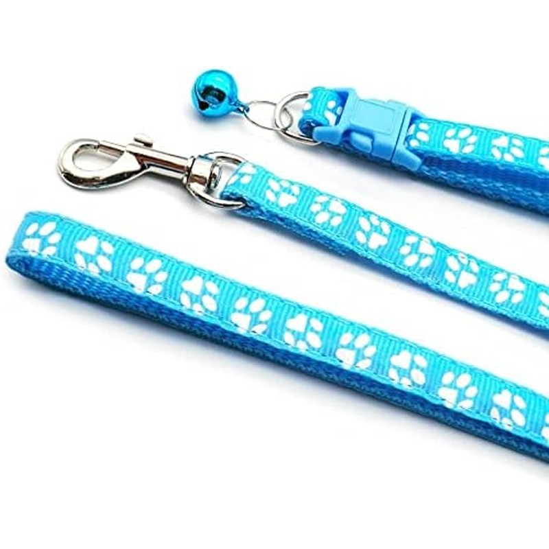 Foyscr Puppy Collar Set with Leash, Dog Collar and Leash, Adjustable Dog Collar, Soft Nylon Pet Collar for Puppy, Cat, Comfortable and Durable(Sky Blue)
