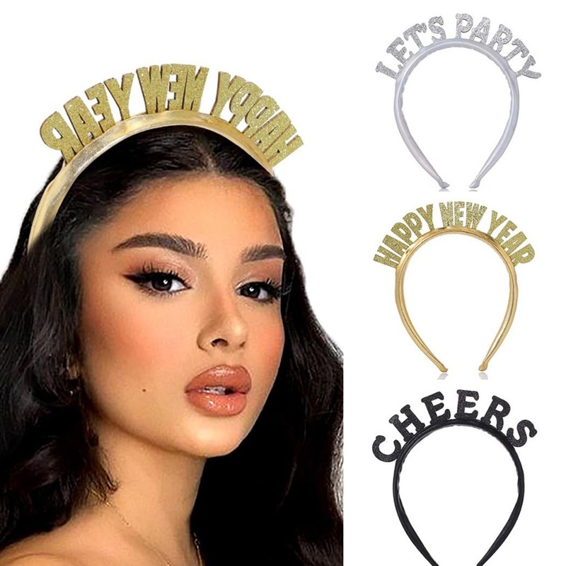 - Party celebration Headwear are three styles: CHEERS letter, HAPPY NEW YEAR letter and LETS PARTY letter, which is very suitable for various festivals party. The whole headband is gold, making you more unique in the crowd.