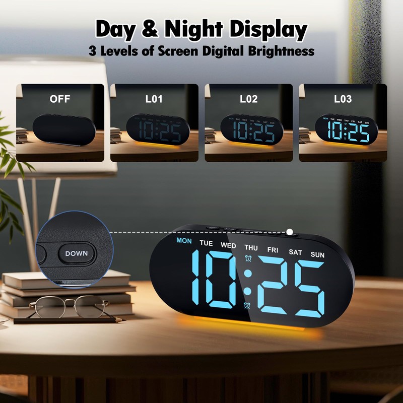• ​​【Intuitive Control】Designed for effortless use, our digital alarm clock features clearly labeled, top-mounted buttons that make setting alarms and adjusting settings simple for everyone. The thoughtful design combines practicality with sleek aesthetics, making it the perfect thoughtful gift, be it a milestone birthday or a surprise holiday treat. Give the gift of hassle-free mornings with a bedside clock that values straightforward operation as much as elegant design.