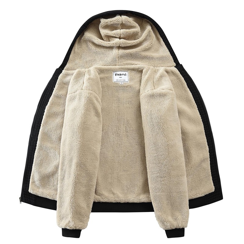 Fozexi Men's Sherpa-Lined Full-Zip Hooded Fleece Sweatshirt Black X-Large
