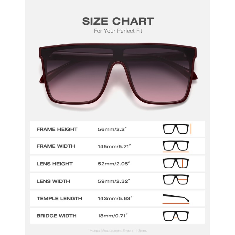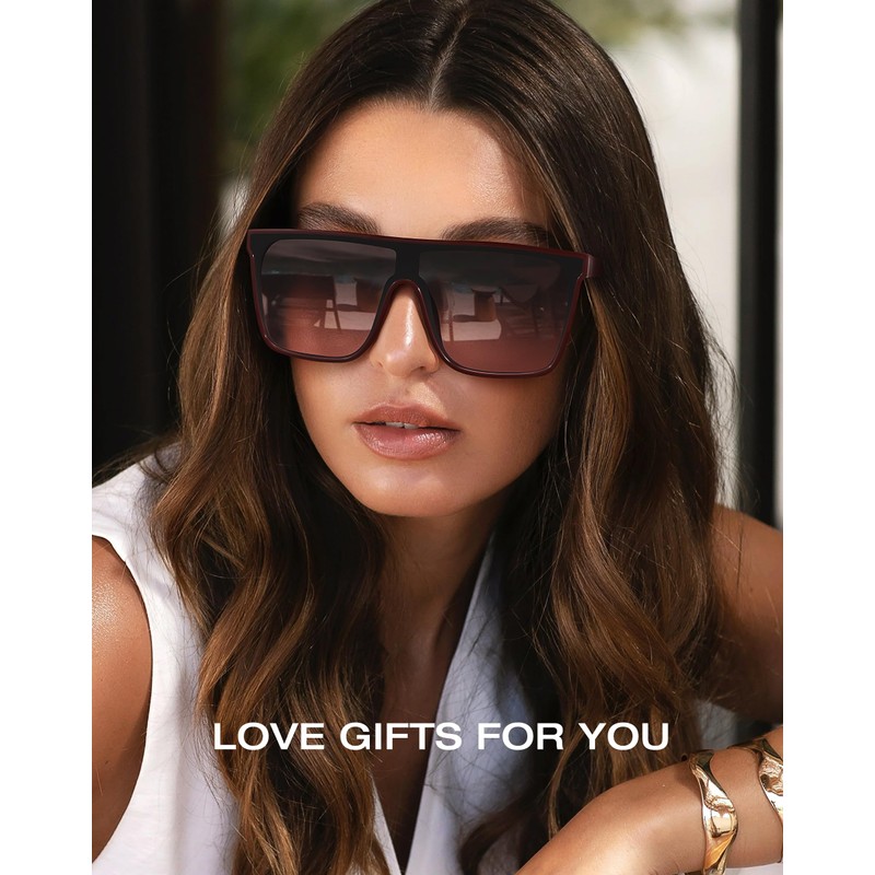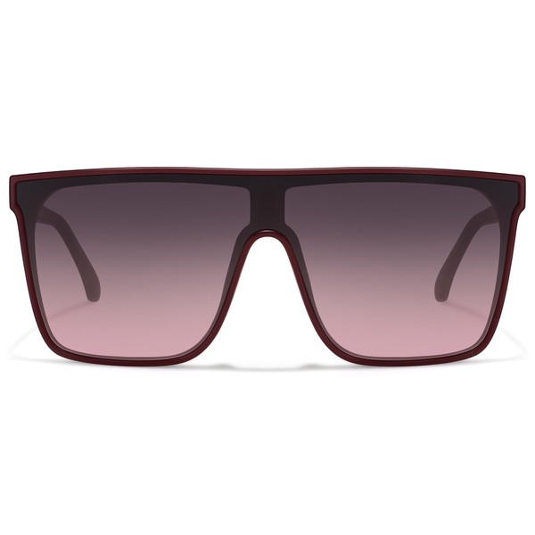 Fozono Trendy Square Oversized Sunglasses for Women Men Retro Flat Top Shield Sun Glasses UV Protection Once Piece Lens Wine Red Frame/Gray Red Gradient Lens