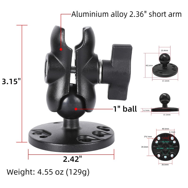 - Universal Compatibility: Compatible with RAM Mounts and other 1”ball b size mounting systems, ideal for car, motorcycle, phone holder, action camera, GPS device, and marine electronic.