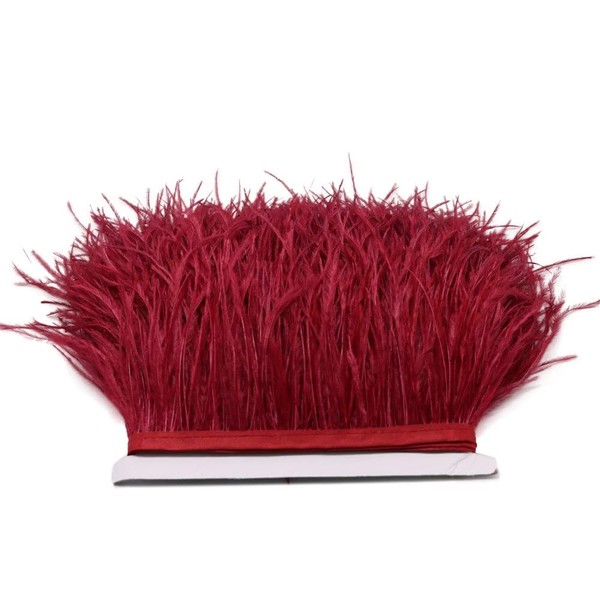 FQTANJU 2 Yards Soft & Natural Ostrich Feathers Fringe Trims Ribbon Used for Dress, Sewing, Craft clothing, lighting decoration, Clothing DIY, etc. (wine-red)