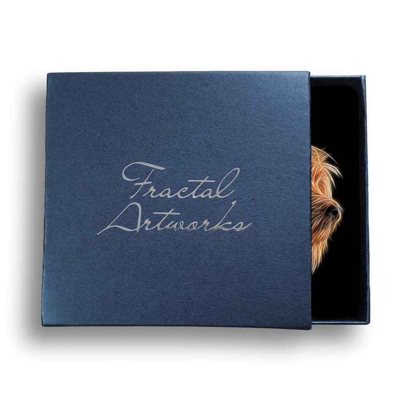 Stunning high quality Silky Terrier dog coaster with world leading coating for a glossy finish, part of the Fractal Artworks dog collection. Beautiful and stunning fractal art design inspired by the things we love, the perfect little gift for a dog lover. Designed and printed in the UK with the best inks to ensure the most vibrant image which doesn't fade. 9cm x 9cm perfect size to place your mug of hot coffee or tea. Over 200 other designs for different breeds of dog, also designs available printed onto other items including keyrings, metal wall plaques, wall clocks, phone cases and mouse mats.