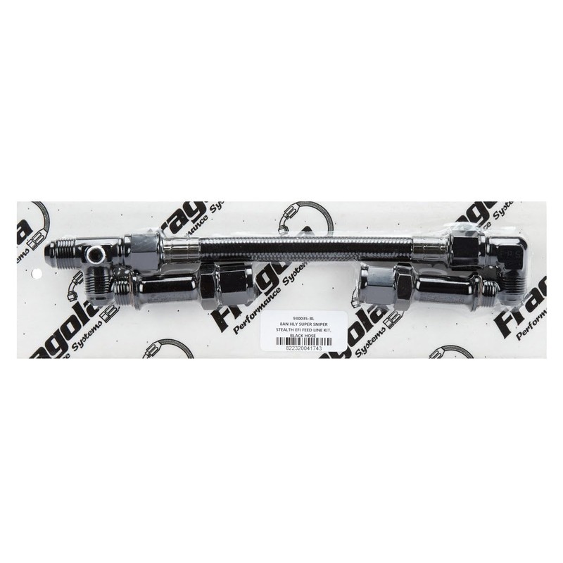 - Fragola 930035-BL Carburetor Fuel Line - 8 AN Male Inlet - Dual 3/4-16 in O-Ring Outlets - Braided Nylon Hose - Aluminum - Black Anodized - Holley Super Sniper - Kit