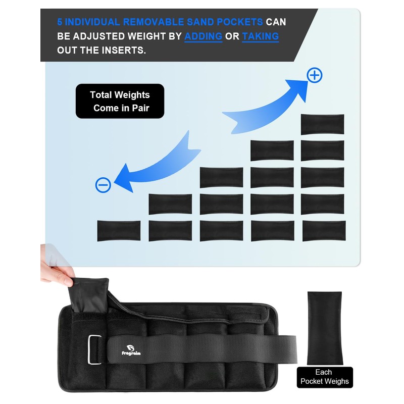 **Features of Adjustable Leg Weights:** \- Adjustable Design: 1/2-pound or 1 pound iron rods can be added or removed for your desired intensity. \- Made with durable mercerized cotton for exercise, and moisture absorbing material inside, soft, breathable and comfortable to wear. \- Adjustable strap closure for loosening and tightening to ensure a customized fit to your ankles, snug and secure, take seconds to put on and take off. \- Filled with the iron shot, add more resistance to your daily workout. Strengthen your legs, burn calories and fat, tone your lower-body muscles. Offer versatility (such as raise and leg lift). \- Great on-the-go: portable and lightweight that can be used by anyone.
