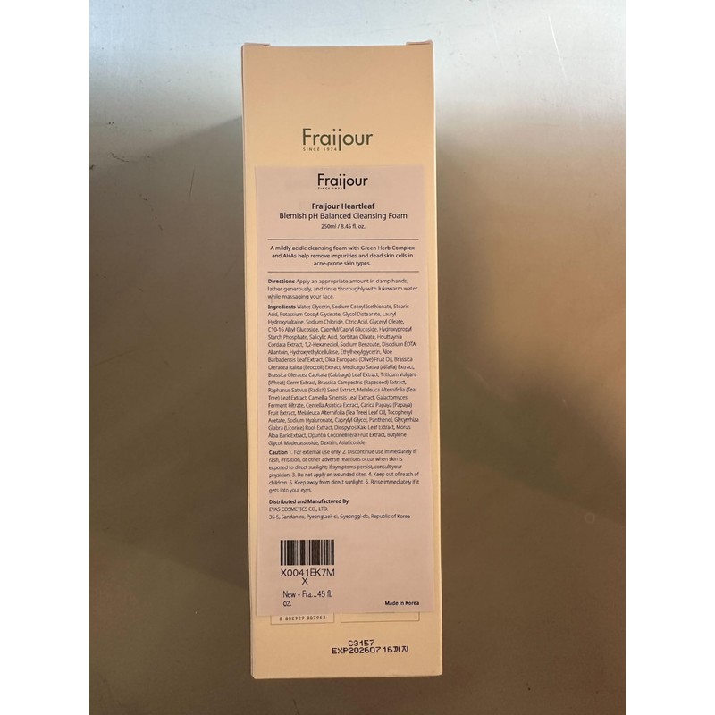 Fraijour Heartleaf Blemish pH Balanced Cleansing Foam, 250ml / 8.45 fl. oz.