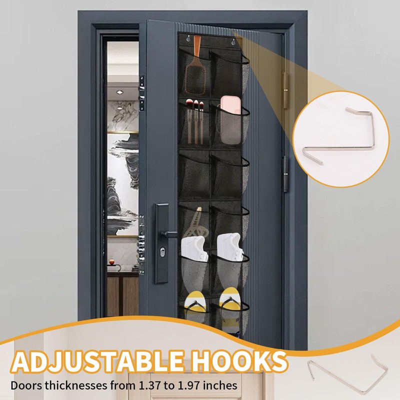 • Sturdy Metal Hooks: Adjustable metal hooks for doors or closet rods, with a thickness range of 1.37" to 1.97"