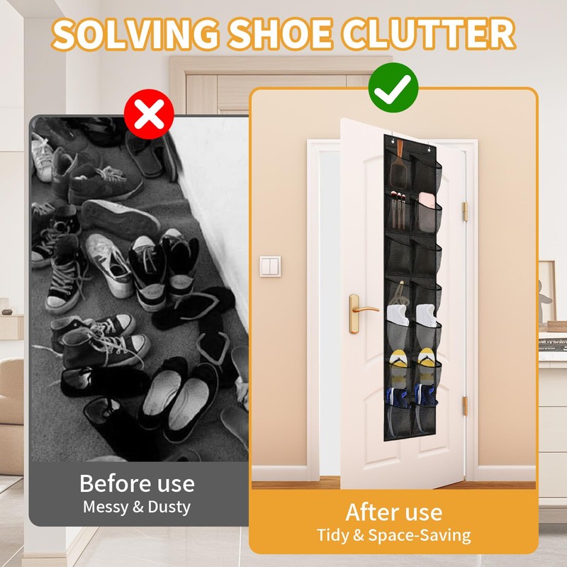 • 2 Packs Shoe Organizer: Reinforced stitching prevents shoes from sagging while keeping items visible and secure