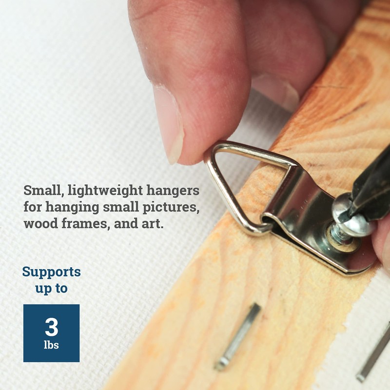 D-Ring Picture hangers or strap hangers are steel ring hangers held by a doubled over steel strap. One screw hole allows for the ring hanger to be securely attached to a wood picture frame or wood project.