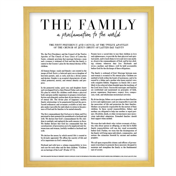 - Features LDS Family Proclamation in classic style