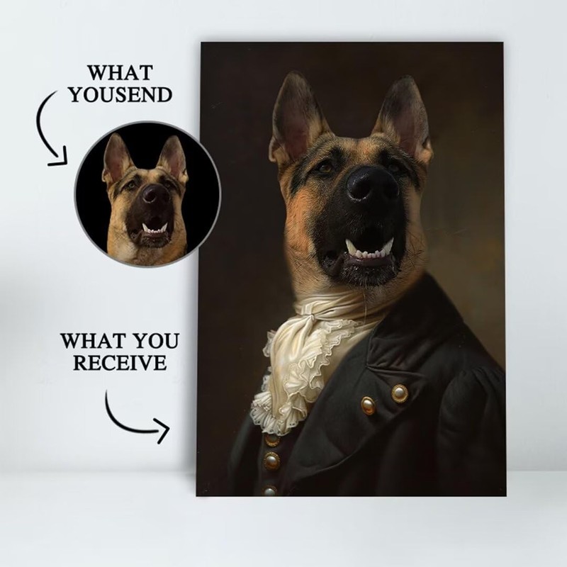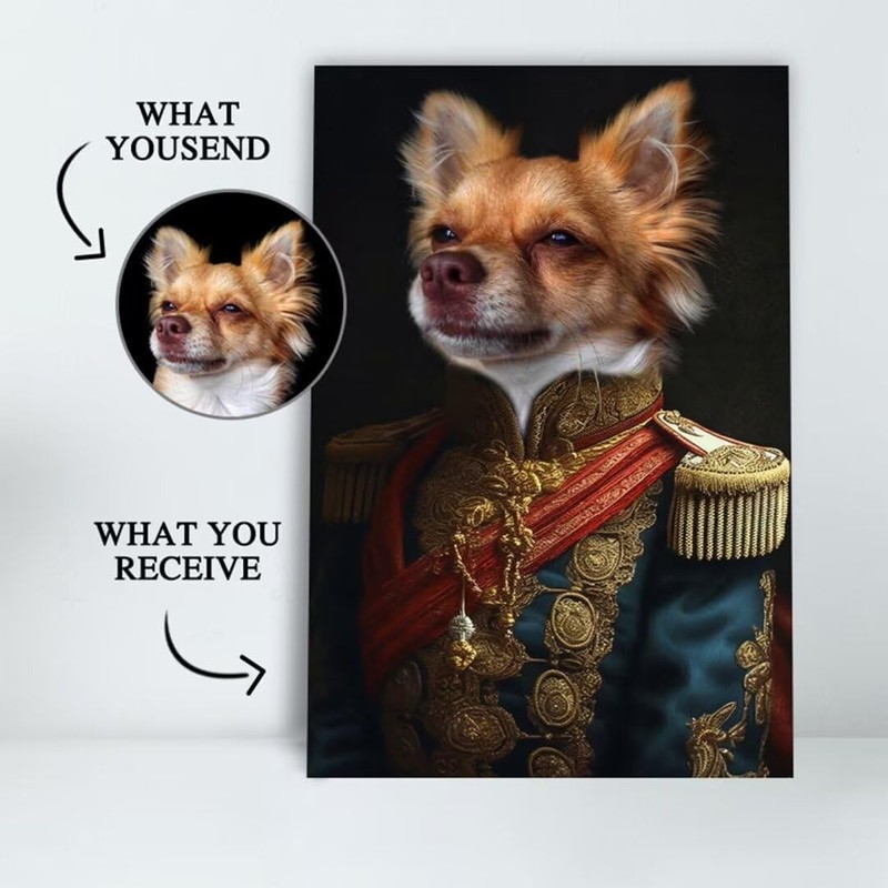 Framed Custom Pet Portrait Painting Canvas Wall Art, Renaissance Dog&Cat Portrait from Photo, Pet portrait painting, Ready to Hang-Y05-7.9x11.8in