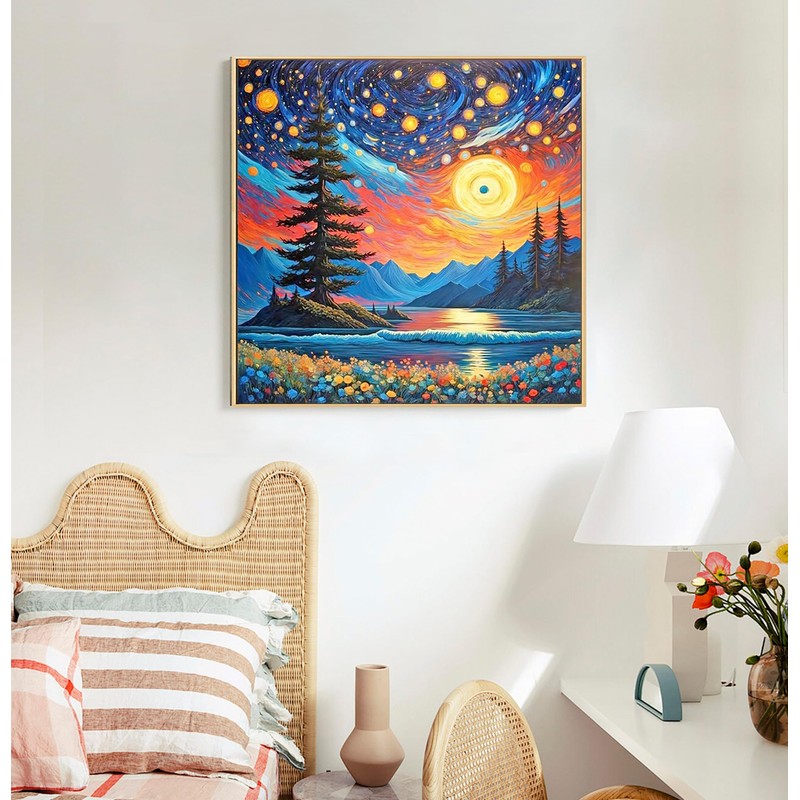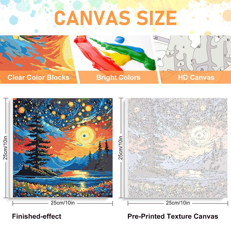 Framed Paint by Numbers Kit for Adults Beginners & Kids Ages 8-12, Starry Night Acrylic Easy Paint by Number with Frame, Watercolor Paint by Number Kits on Canvas Framed (10 * 10 Inch, without Easel)