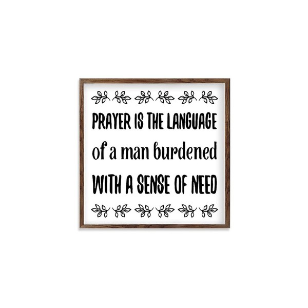 Framed Quotation Wooden Art Signs Positive Quotes Prayer is The Language of A Man Burdened with A Sense of Need. White-C7 30x30cm