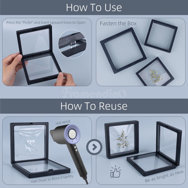 - (Product Size) The 3D Floating Display Holder Stands Are About 5; 5 x 5; 5 x 0; 8 Inch, 4; 3 x 4; 3 x 0; 8Inch