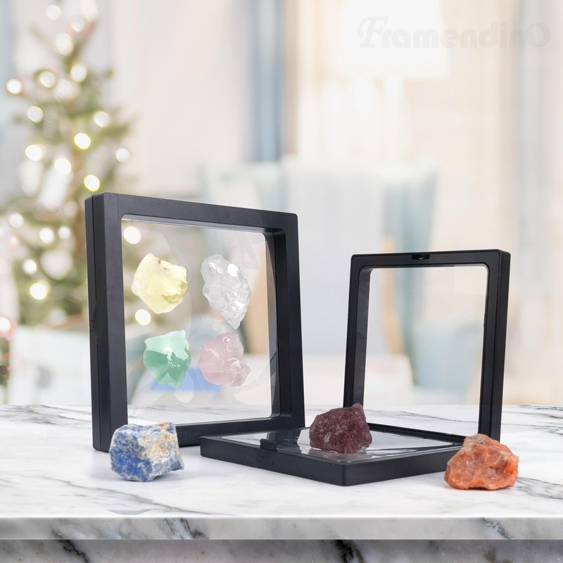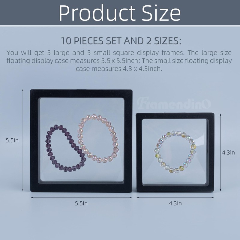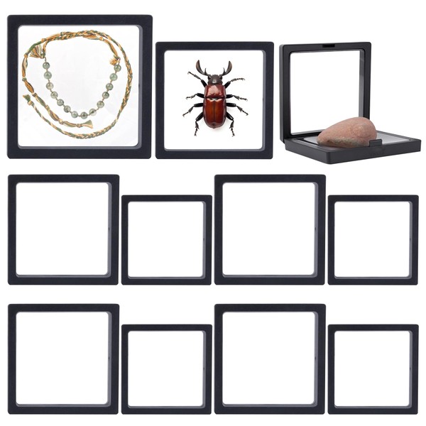 Framendino, 10 Pack Black 3D Floating Frame Display Case Challenge Coin Holder Stands Jewelry Storage Box for AA Medallion Shells Gems (4.3x4.3, 5.5x5.5)