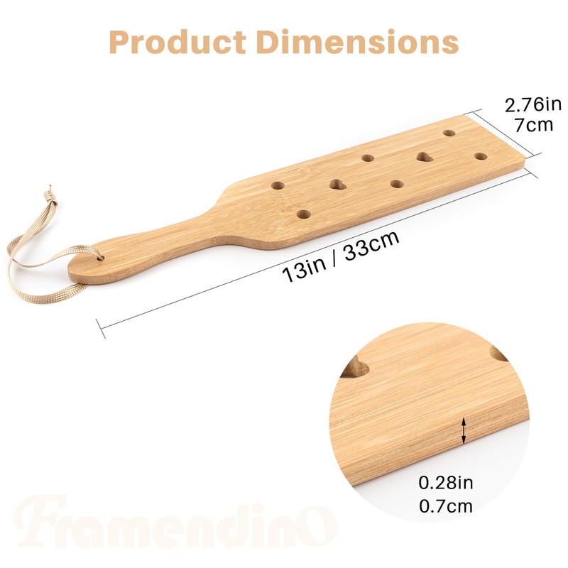 • Product Dimensions: This bamboo paddle is very lightweight, with a size of 13*2.76inch, and a handle with a wrist loop can achieve a confident swing.