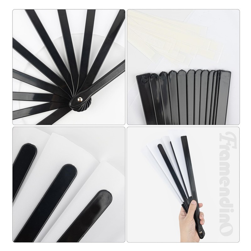 Framendino, 2 Pack Sublimation Folding Hand Fan Blanks Heat Transfer Handheld Fans Foldable for Party Wedding Performance (Black)