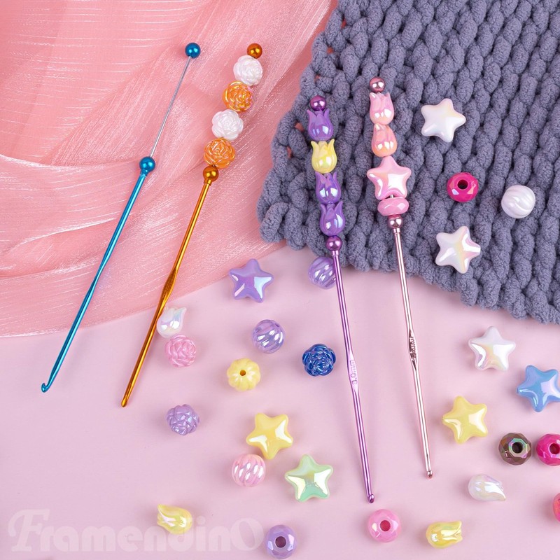 Framendino, 6 Pack DIY Beadable Crochet Hooks Knitting Needles Set Aluminum Handle 3 mm for Focal Beads Colors