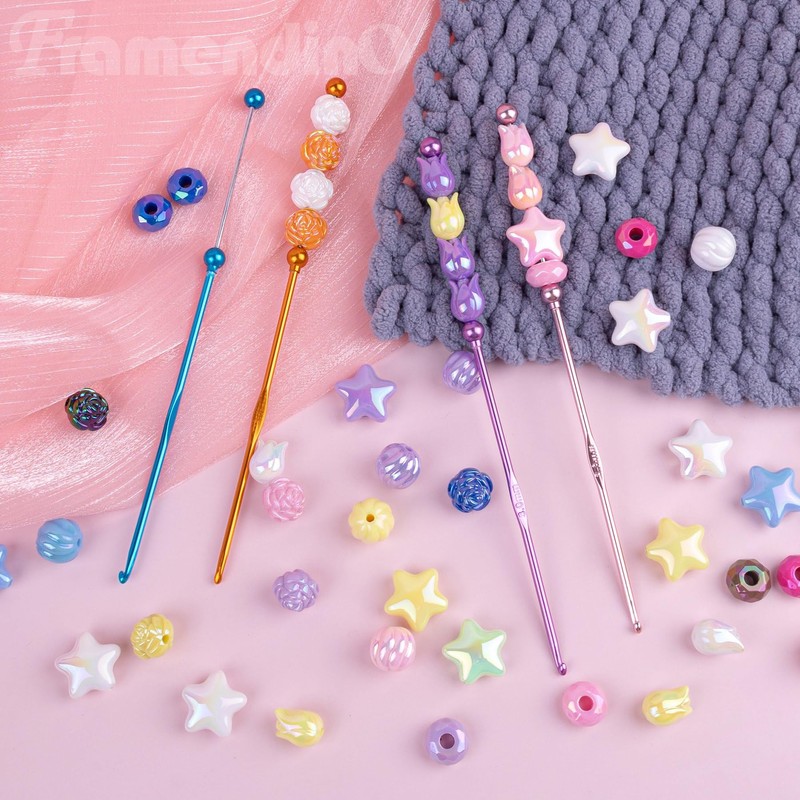 - Design: Beadable metal crochet hooks set with Beaded rod design, you can DIY crafts