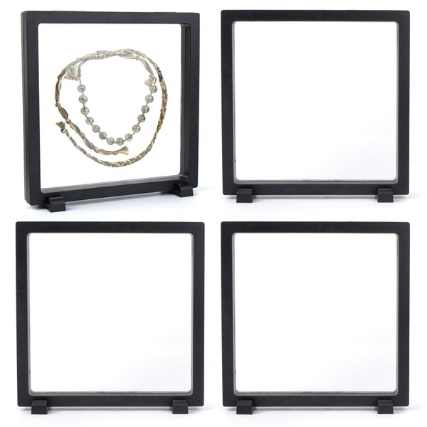 Framendino Framendino, 4 Pack Black 3D Floating Frame Display Case 7 x 7 x 0.8 Holder Stands Jewelry Storage Box for AA Medallion Shells Gems