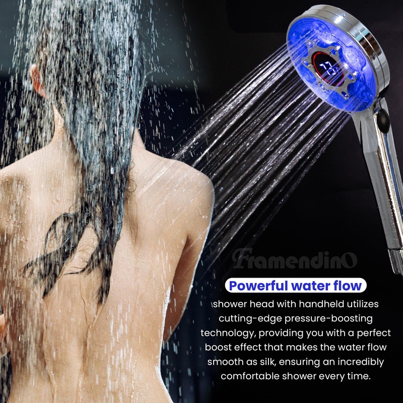 Framendino, LED Handheld Shower Head Color Changing Handheld Spray Shower Head with Temperature Display with 59" Hose