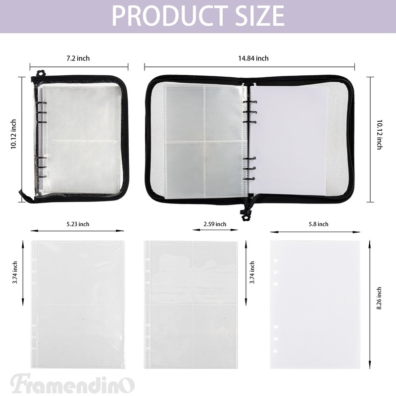 Quantity: 1 x Zipper Binder Cover + 40 Sheets Blank Release Paper+ 10 Sheets 4-Slot Pocket Pages+ 10 Sheets 2-Slot Pocket Pages