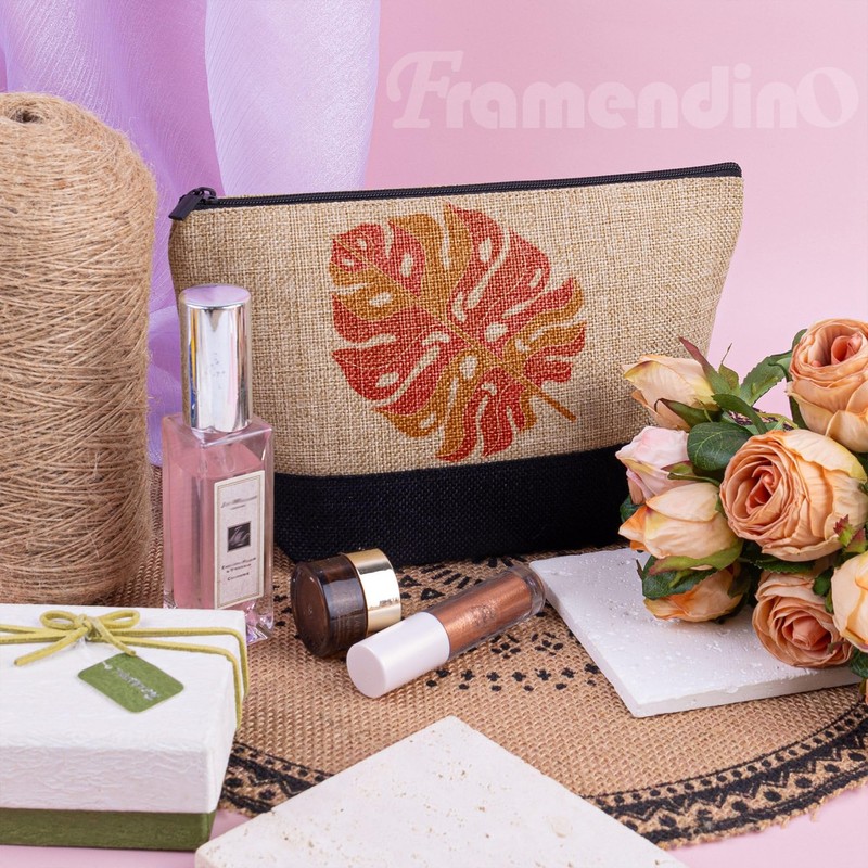 Framendino, Sublimation Blanks Cosmetic Bags Transfer Makeup Bag with Zipper, Linen Color, 10 Pack