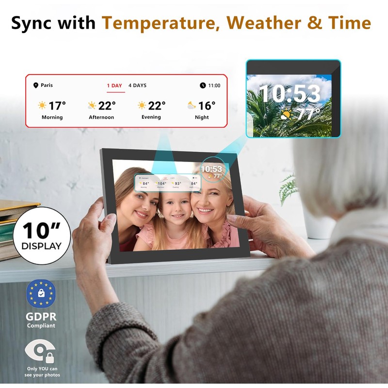 - ๐ช๐ฒ๐ฎ๐๐ต๐ฒ๐ฟ ๐๐ผ๐ฟ๐ฒ๐ฐ๐ฎ๐๐ฒ๐, ๐ง๐ฒ๐บ๐ฝ๐ฒ๐ฟ๐ฎ๐๐๐ฟ๐ฒ, ๐ฎ๐ป๐ฑ ๐๐น๐ผ๐ฐ๐ธ ๐๐ถ๐๐ฝ๐น๐ฎ๐๐: keeps loved ones informed with real-time weather, temperature, and clock displays. Its intuitive interface helps seniors track daily conditions effortlessly, while travelers plan smarter with live forecasts. Share location-based updates remotely, ensuring family stays connected and prepared.
