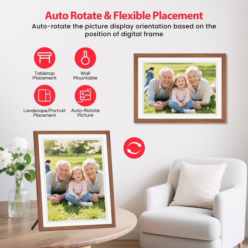 - 【15 Inch IPS Touchscreen】15" Large IPS HD Digital Photo Frame - Stunning 1024*768 touchscreen with 178° ultra-wide viewing angle delivers true-to-life clarity. Anti-glare IPS panel preserves vibrant, accurate colors from any position. Simple grandparent-friendly touch controls (swipe/tap) for effortless.