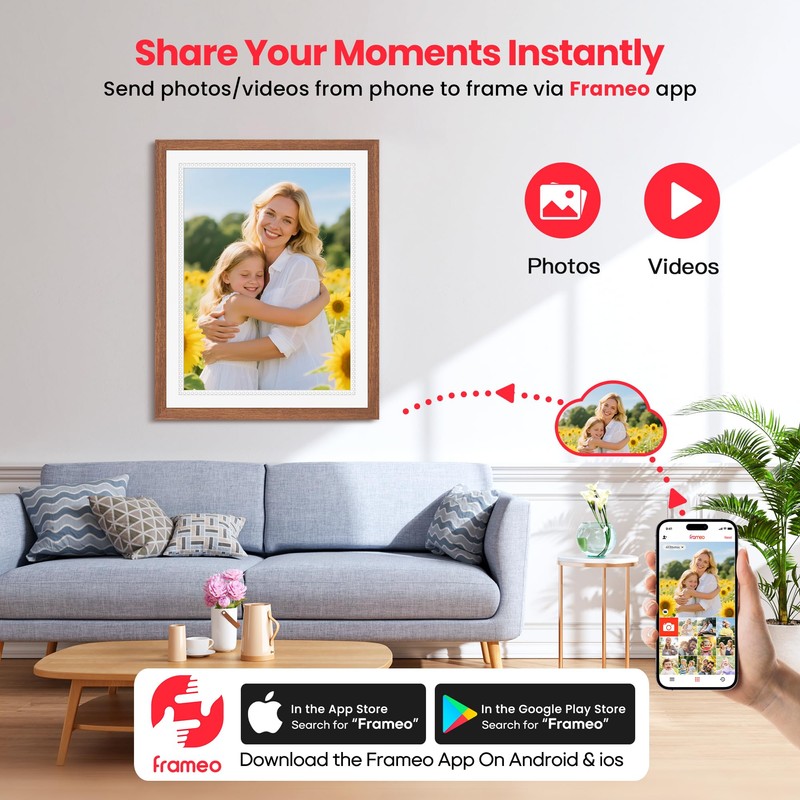 - 【Share Memories Instantly with Frameo App】 Stay connected with loved ones—send photos & videos directly to their Frameo digital frame in real-time. No complicated setup: just connect to WiFi, use the Frameo App, and share memories from anywhere. Add personalized captions to make every moment special.