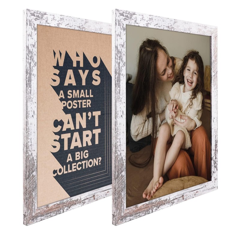 - Frame Design: Classic country white barnwood grain finish, rustic style, attractive and durable. Back clips for easy opening and picture access