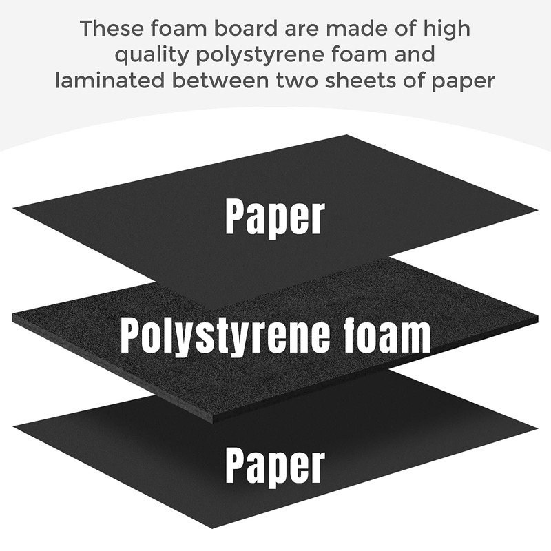 - 18''x24'' Black Foam Board - This foam board is made of high quality polystyrene foam and laminated between two sheets of paper, durable and Acid-free