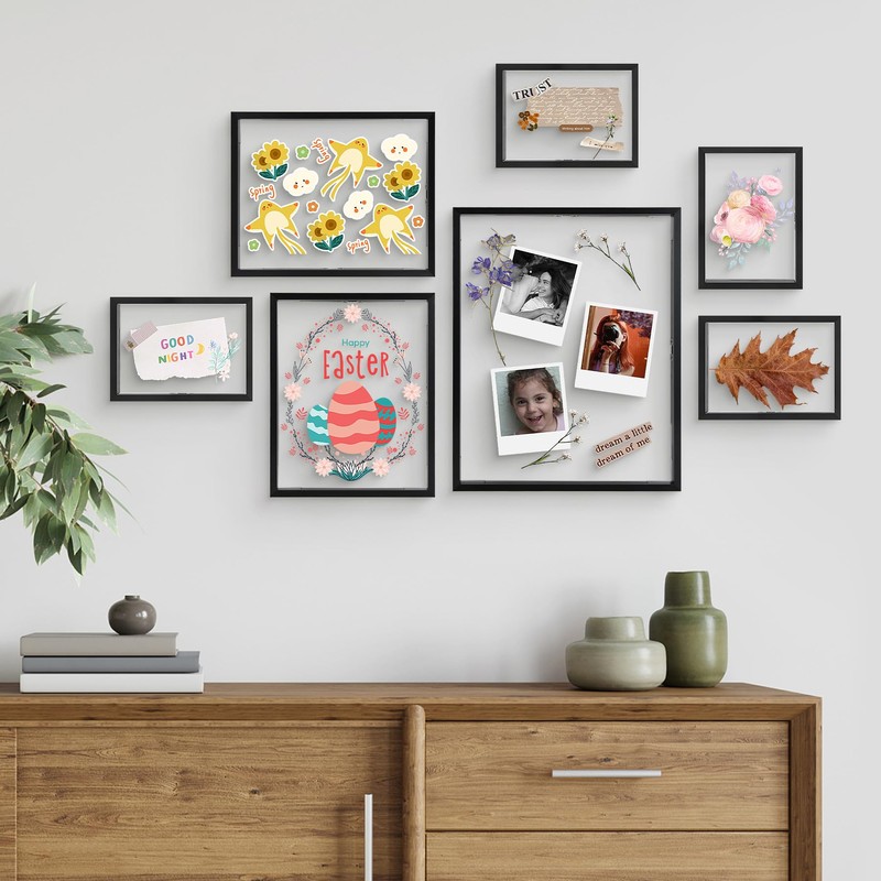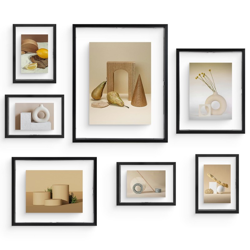 - Use and Display: Showcase any size photos for a floating frame effect. Includes 1 11x14 frame, 2 8x10 frames, 4 5x7 frames.