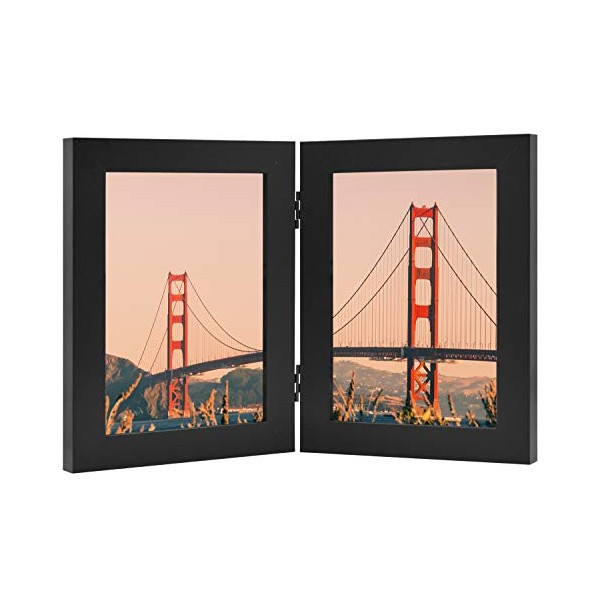 Frametory, Hinged Picture Frame with Glass Front Made to Display Two Pictures, Stands Vertically on Desktop or Table Top (Black, 5x7 Double)