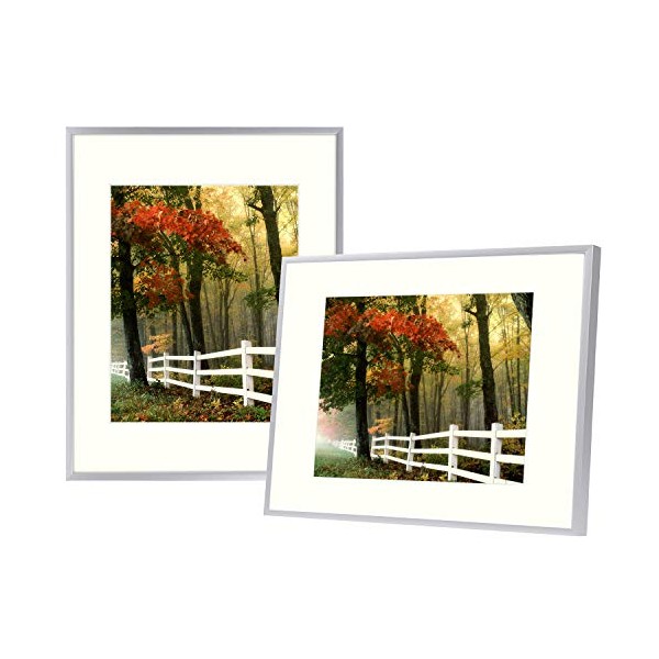 Frametory, Silver Aluminum Frame Includes Ivory Mat for Picture Wall Display, Sawtooth Hanger, Swivel Tabs, Spring Clips Great for Photos, Artworks, Posters (11x14 Frame for 8x10 Picture, 2-Pack)