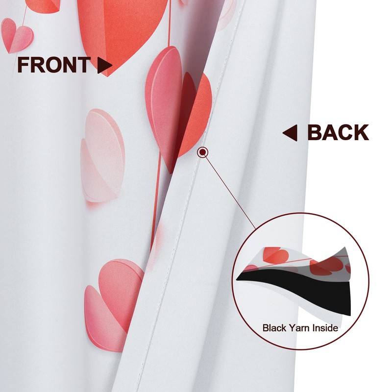 - HIGH-QUALITY MATERIAL: The red heart curtains are made of high-quality polyester fabric, which is durable, heat-resistant, breathable and soundproof. Its texture is smooth and soft, thread trimmed and wrinkle-free, not easily deformed.