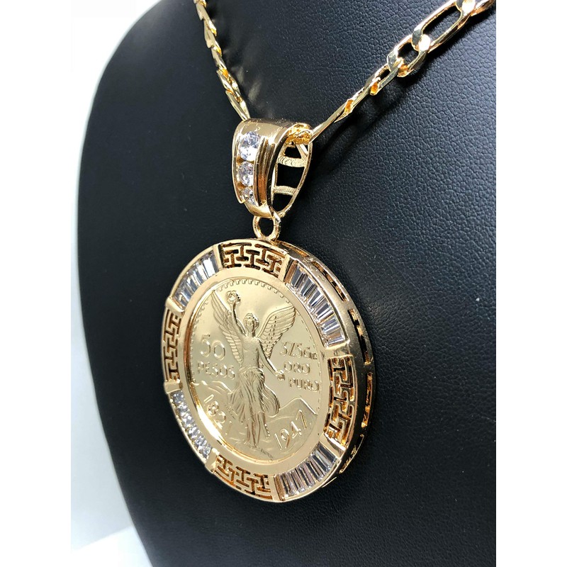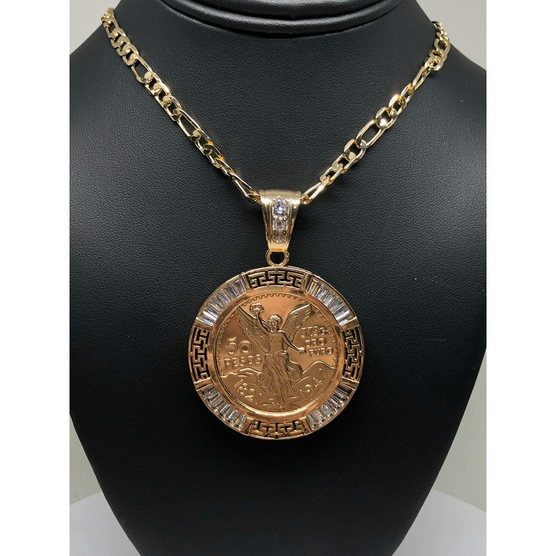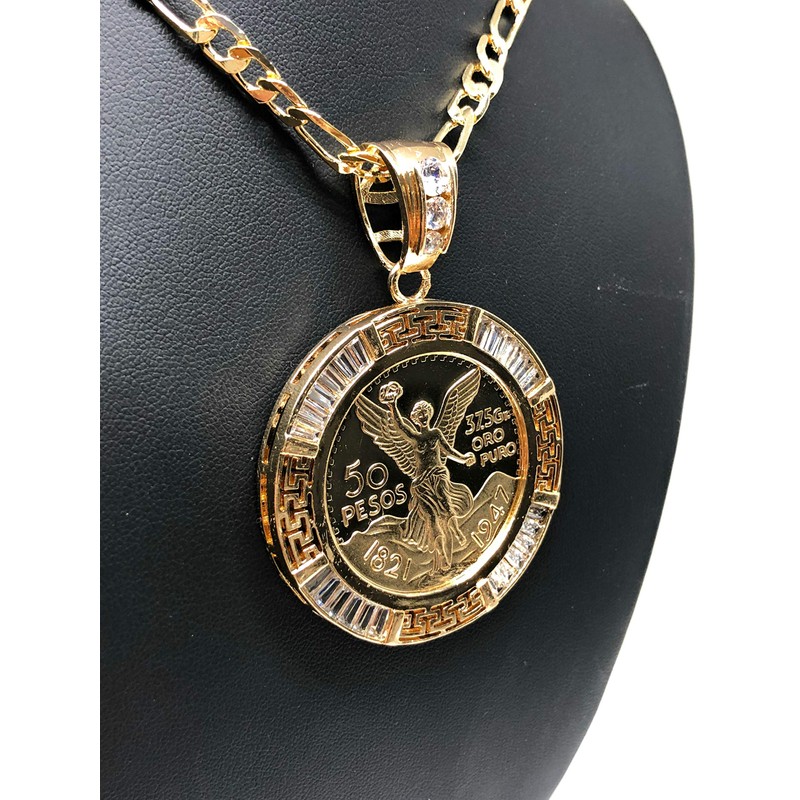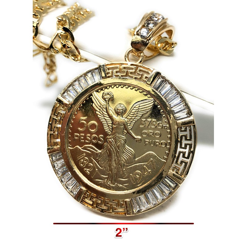 Fran & Co. Gold Plated Coin Centenario Mexicano Moneda 50 Pesos Pendant Chain CZ Oro Cadena 26”, metal