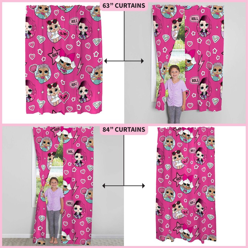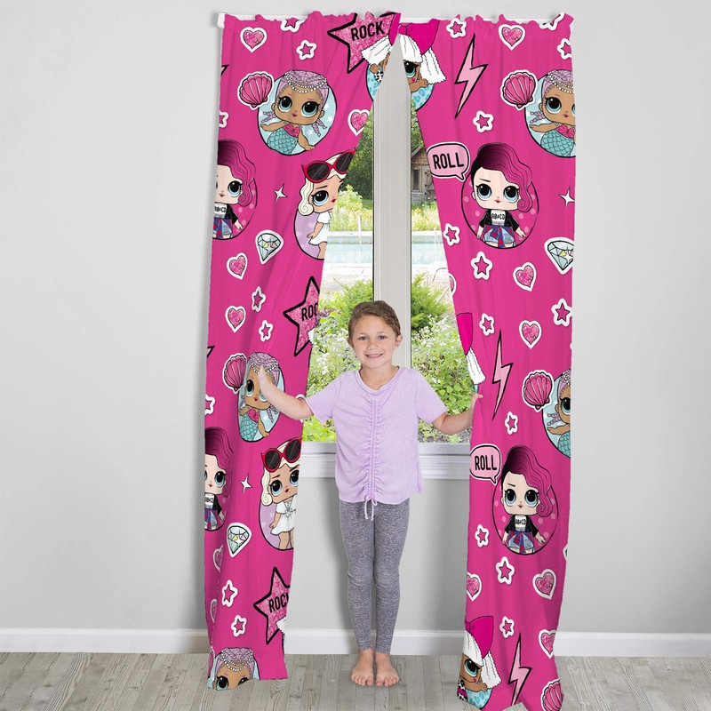 - LOL SURPRISE DESIGN: Create an adorably outrageous focal point in her bedroom with these colorful LOL Surprise drapes featuring fun logos in a "Glamour Girls" pattern.