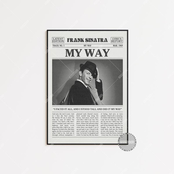 Frank Sinatraa Retro Newspaper Print Poster No Frame, My Way Poster, My Way Print, Frank Sinatra Poster, My Way Poster:_8x12 Inch