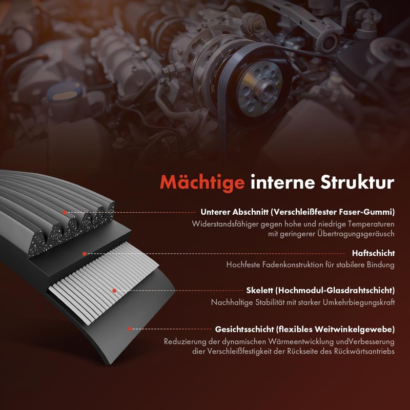 - Technical information: rib number: 4; length [mm]: approx. 876; Width [mm]: approx. 14; Fuel: diesel/petrol